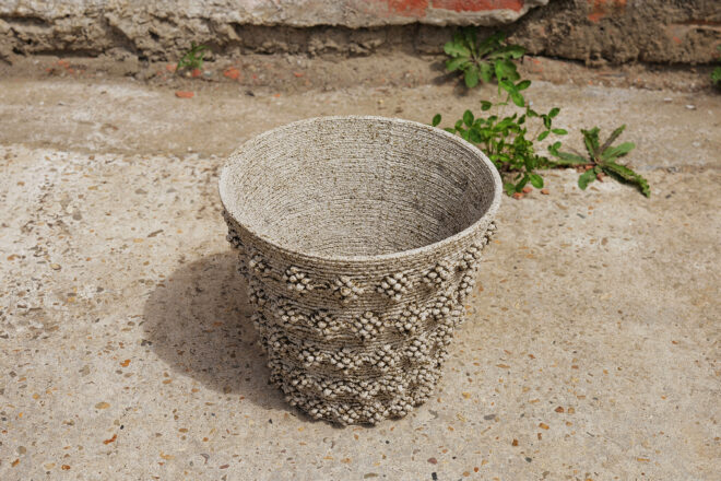 Research for Photosynthesising Flowerpots is carried out in collaboration with Unfold Design Studio (BE) for the computational and toolpath design. Biobased material research and digital manufacturing was realized by Omlab Studio (NL). The project further benefited from the expertise of the KYOTO Design Lab, Kyoto Institute of Technology, and Waseda University, with special thanks to Project Associate Professor Gergely Péter Barna, Associate Professor Kazutoshi Tsuda and Professor Hideo Iwasaki.